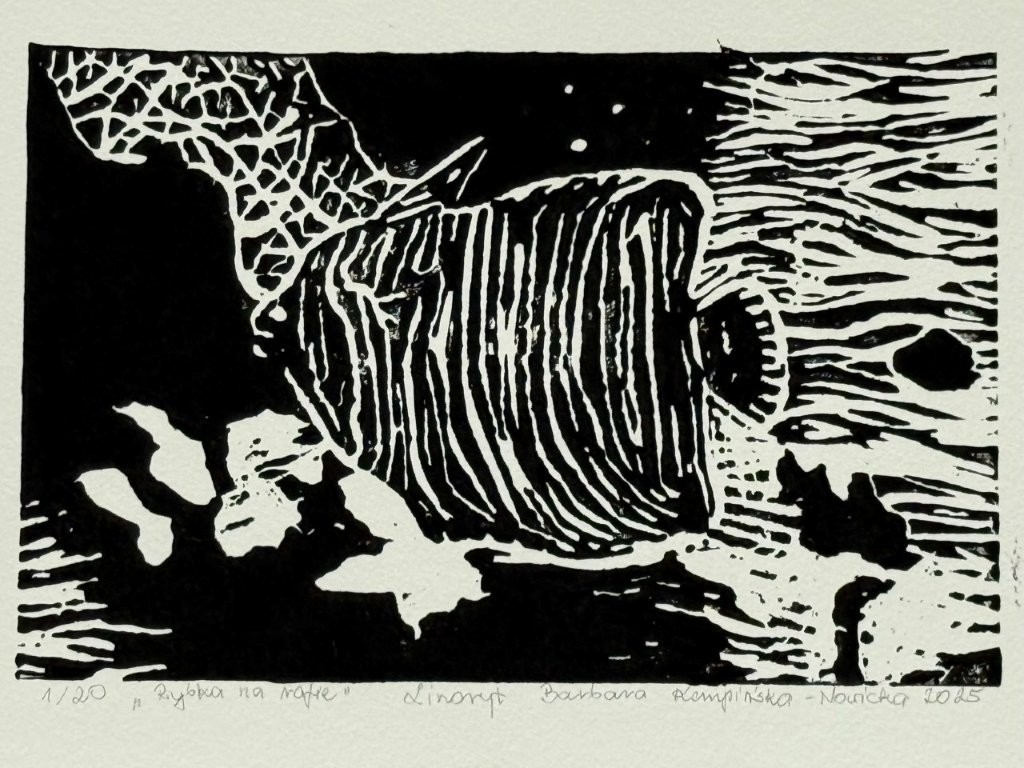 Barbara Kempińska-Nowicka, Rybka na rafie, linoryt