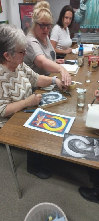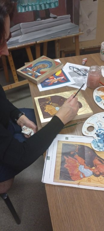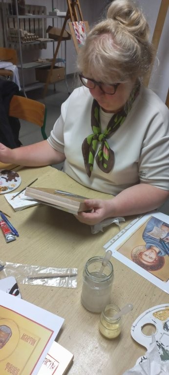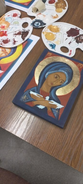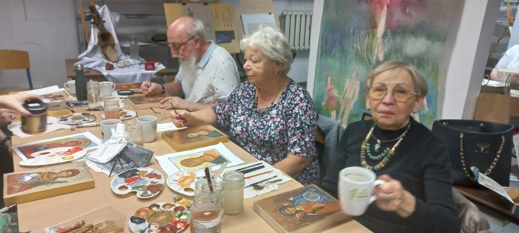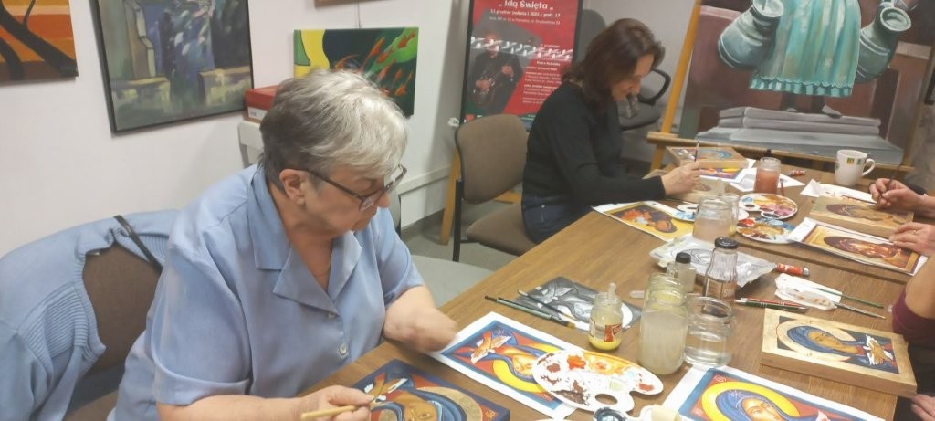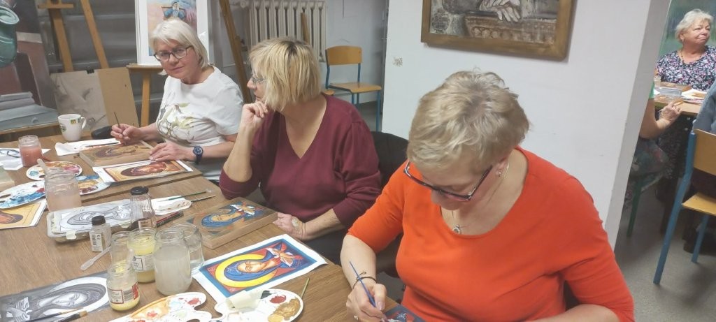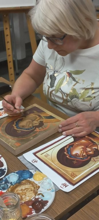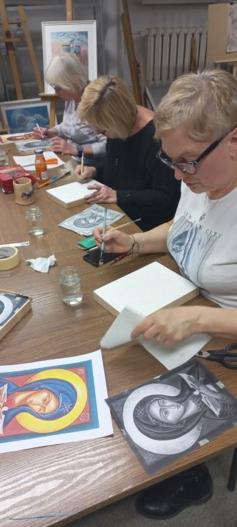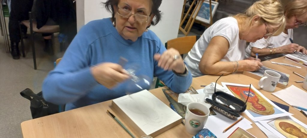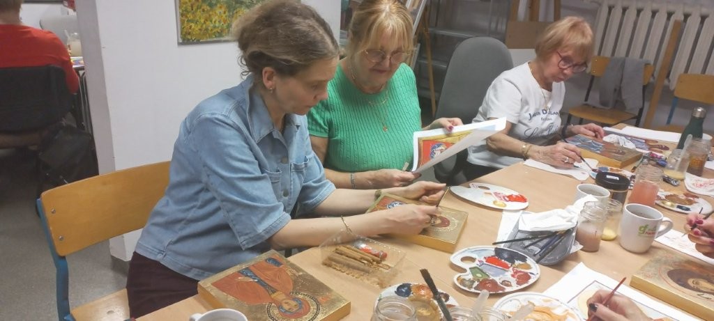 W pierwszej połowie grudnia 2025 r. odbyły się 16-godzinne warsztaty ikonopisania. To ostatnie warsztaty artystyczne zaplanowane do realizacji na mijający rok, rok obfitujący w wiele atrakcyjnych wydarzeń, spotkań, eventów, warsztatów edukacyjno-artystycznych. W ostatnich warsztatach wzięło udział 14 seniorów, a prowadziła je wybitna specjalistka i znawczyni kultury prawosławia, pani dr Aleksandra Michalska, a organizacyjnie spięła Barbara Kubiak-Sobczak. Już wielokrotnie wskazywałam, że zainteresowanie kulturą prawosławia, a dokładniej ikonopisaniem wśród podolańskich Seniorów jest bardzo duże, ale grupy ćwiczebne tego warsztatu, ze względu na trudność pisania, nie powinny przekraczać 12 osób. W ostatniej edycji ikonopisania zebrała się grupa w części składająca się z osób, które po raz pierwszy zetknęły się z tą techniką. Stwierdzam za trenerką artystyczną, że grupa spisała się bardzo dobrze, prace wykonano z dużą starannością techniczną i artystyczną. Serdeczne gratulacje! Poniżej prezentujemy wykonane prace.