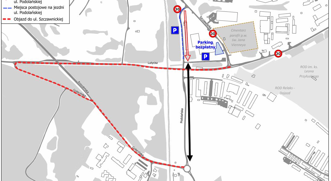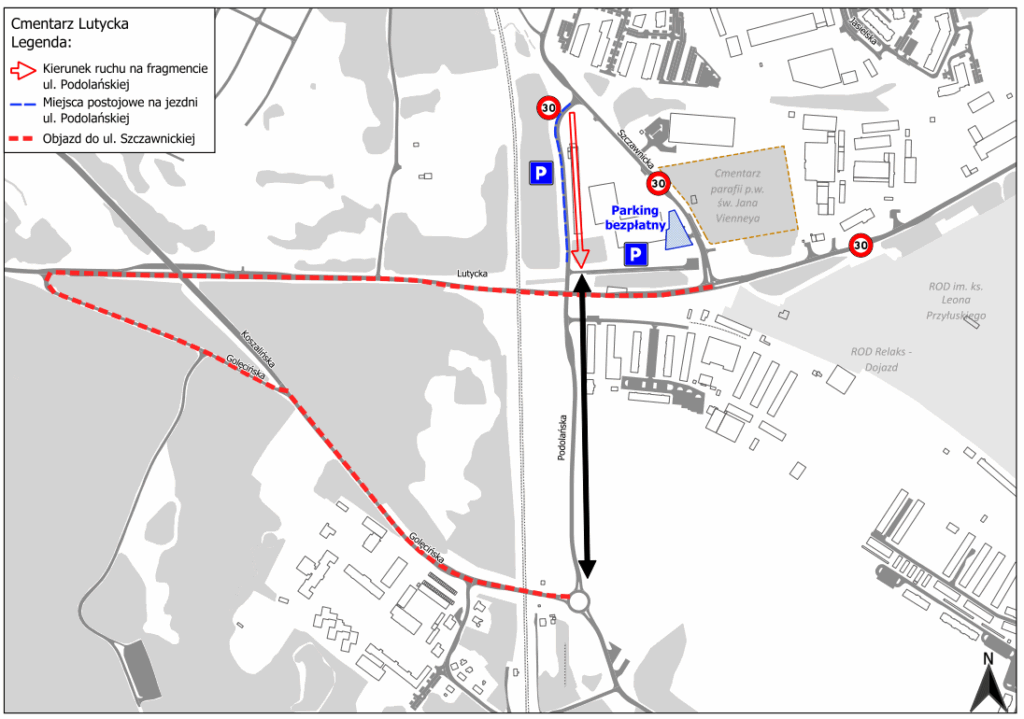 W związku z nowym układem drogowym w rejonie ul. Lutyckiej zmianie ulegną możliwości parkowania w okolicy cmentarza.
