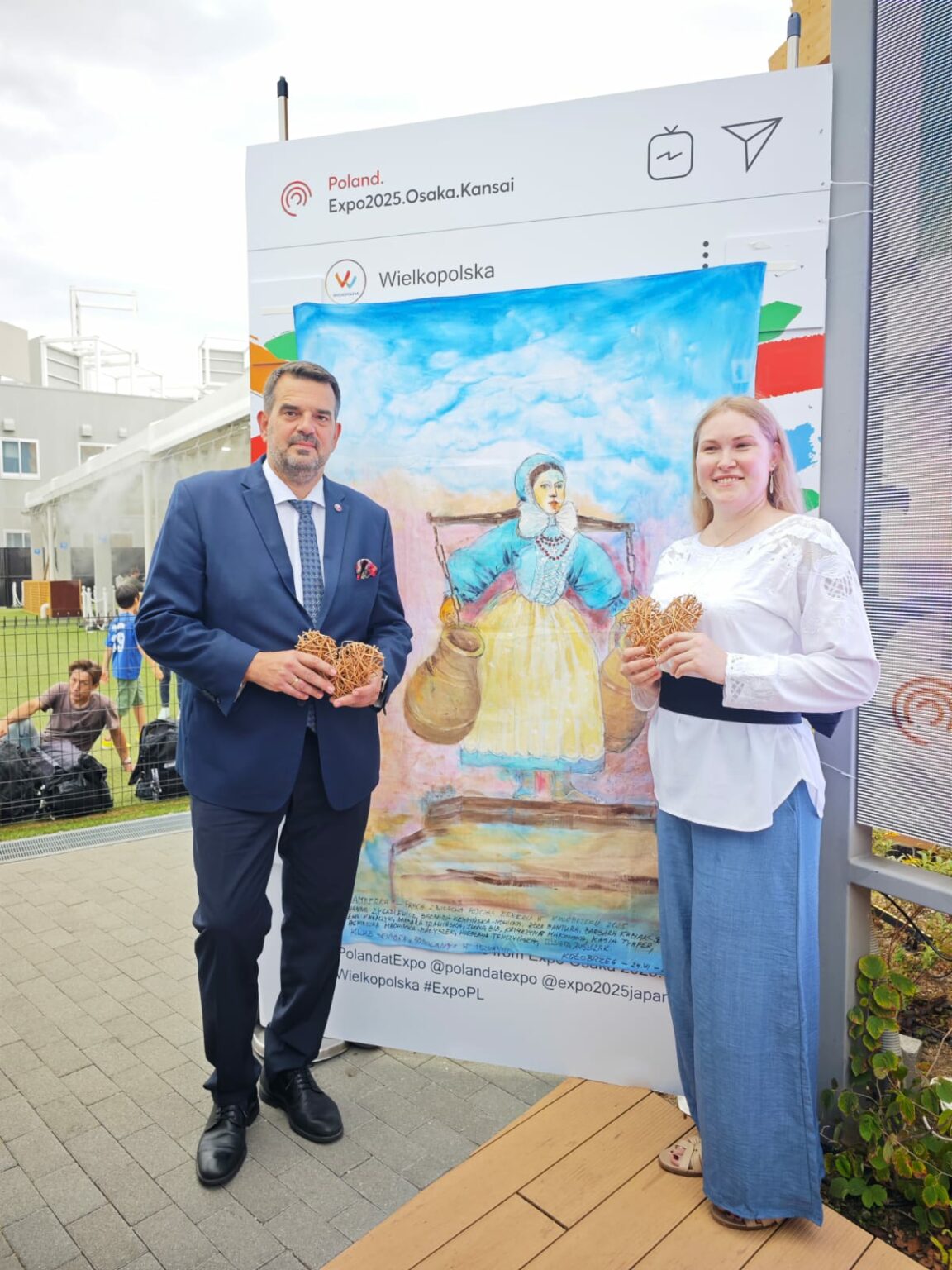 Jak Państwo pamiętają z poprzednich wpisów i relacji , latem tego roku, podczas pleneru malarskiego w Kołobrzegu, grupa seniorek z Pracowni Rysunku i Malarstwa Klubu Seniora Podolany wykonała na płótnie obraz Bamberki 200cm x 100 cm. Płótno prezentowaliśmy 7 września na Festynie na Podolanach i tam pracą zainteresowała się radna z Podolan, pani Natalia Osten-Sacken……. i zabrała na Expo 2025 r. do Osaki w Japonii, gdzie promowała Wielkopolskę, w polskim pawilonie. Cała Pracownia jest dumna, że mogliśmy jako Klub Seniora Podolany reprezentować Wielkopolskę na Expo 2025 r. Brawo MY!!!