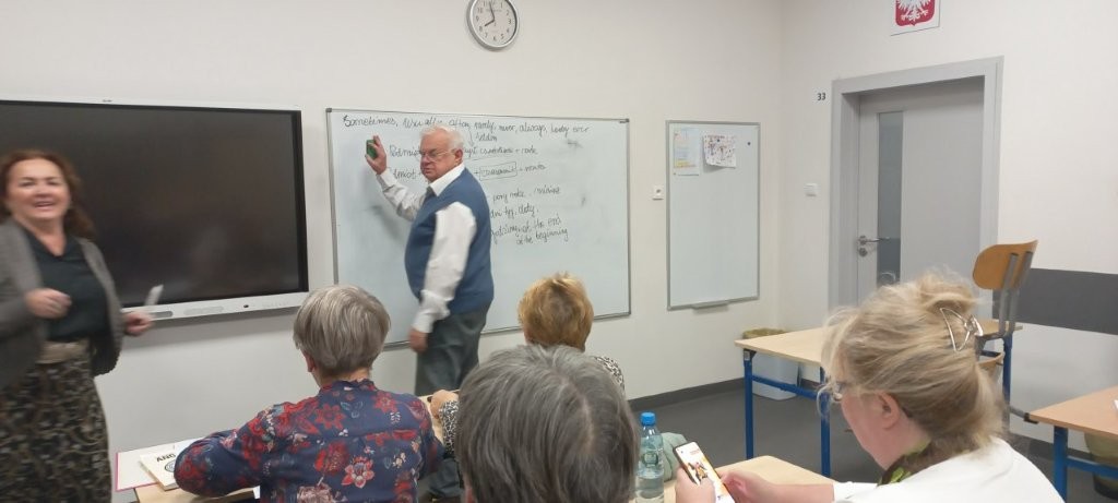 W listopadzie 2025 r. dobiegł końca program nauki angielskiego na poziomie podstawowy plus, realizowany w ramach bezpłatnego projektu „Senior na czasie”, finansowanego z budżetu Miasta Poznania. W zajęciach wzięło udział 13 niezwykle zmotywowanych Seniorów, którzy z imponującą determinacją uczyli się nowych słów, zwrotów i prostych konwersacji.