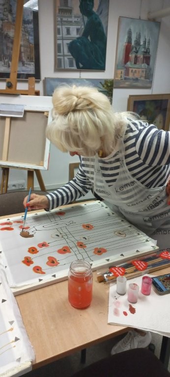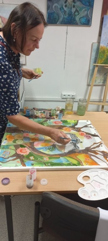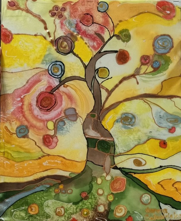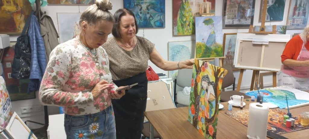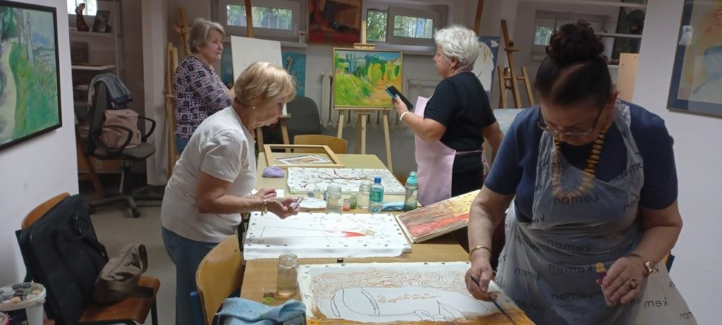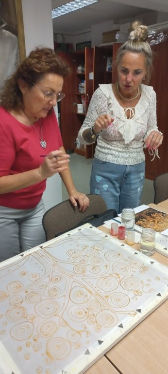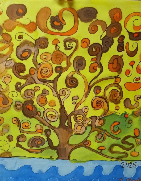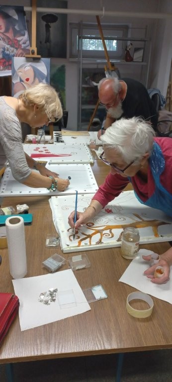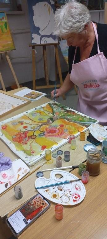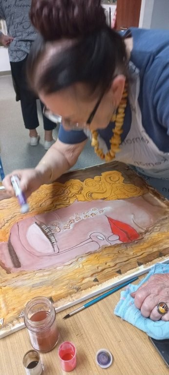 W miesiącu wrześniu 2025 r. odbyły sie cztery warsztaty malowania obrazów na jedwabiu, w których udział wzięło 15 osób. Inspiracją była immersyjna wystawa Gustava Klimta na MTP w Poznaniu, którą zwiedzaliśmy grupowo w styczniu 2025 r. Warsztaty były technicznie trudne, wymagały wiele wysiłku i staranności ze strony seniorów, a ich efektem jest prezentowana wystawa. Przyznacie Państwo, że powstały piękne prace. Poniżej wystawy migawki z przebiegu.