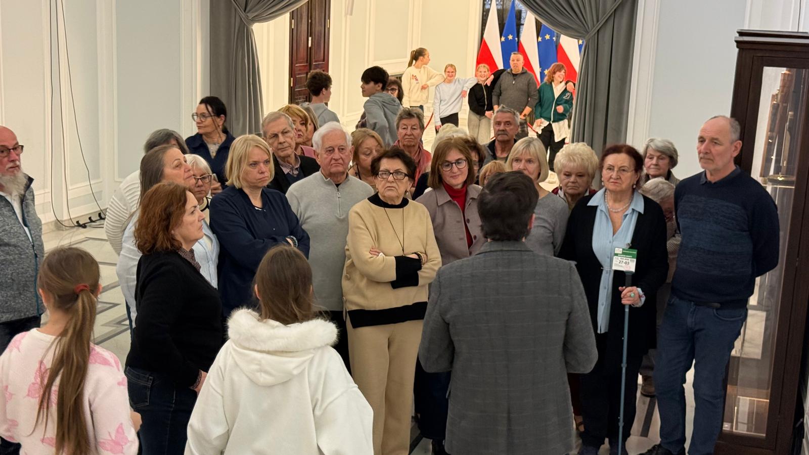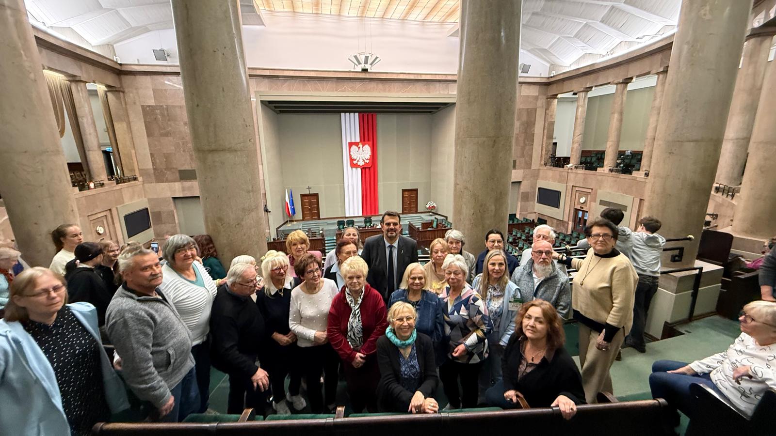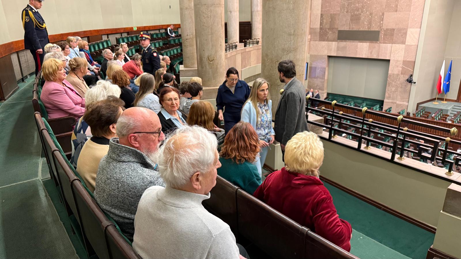 Zwiedzanie Zamku Królewskiego było wyjątkowo satysfakcjonujące dzięki dwóm kompetentnym przewodniczkom, które w pasjonujący sposób przybliżyły nam historię obiektu, jego odbudowę oraz dzieje Polski. Kolejnym punktem było wejście na teren Sejmu i wspólny obiad w restauracji sejmowej. Następnie z galerii obserwowaliśmy obrady Sejmu, wystąpienia parlamentarzystów oraz uroczyste zakończenie sesji przez Wicemarszałka Szymona Hołownię, zwieńczone tradycyjnym, trzykrotnym uderzeniem laską marszałkowską.