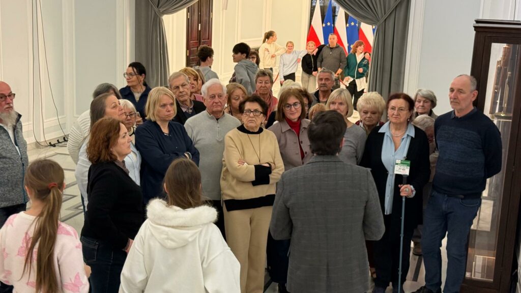 Wszystko zaczęło się od poznańskiej Bamberki na płótnie, prezentowanej podczas Expo 2025 w Osace (Japonia), której Komisarzem Generalnym był poseł ziemi wielkopolskiej, Jacek Tomczak. To właśnie Pan Poseł zaprosił Seniorów z Podolan do Sejmu. Program wizyty przygotowała jego asystentka, dr Natalia Osten-Sacken, wspólnie z Barbarą Kubiak-Sobczak (koordynatorką Pracowni Rysunku i Malarstwa) oraz Katarzyną Zielińską (Prezeską zaprzyjaźnionej Fundacji Szansa w Poznaniu).