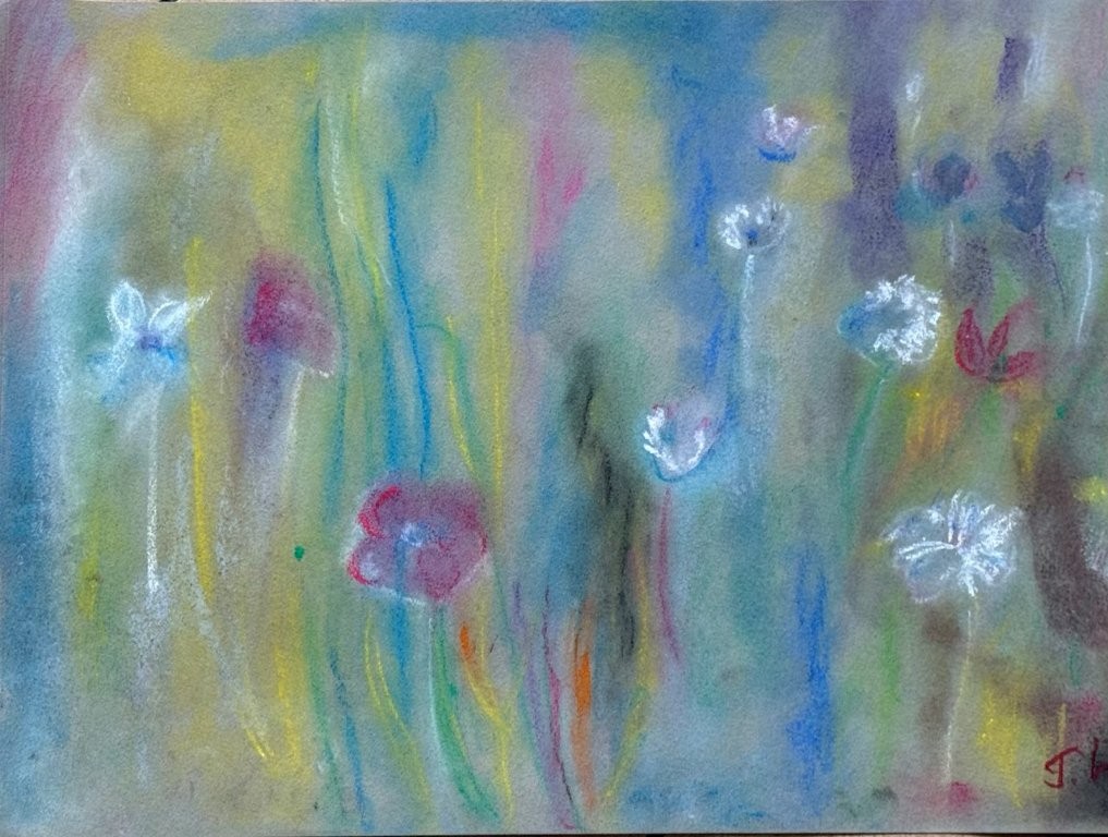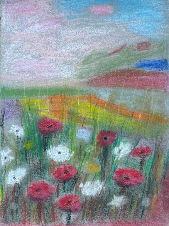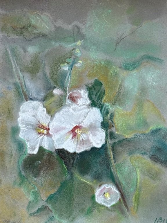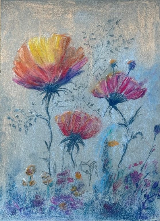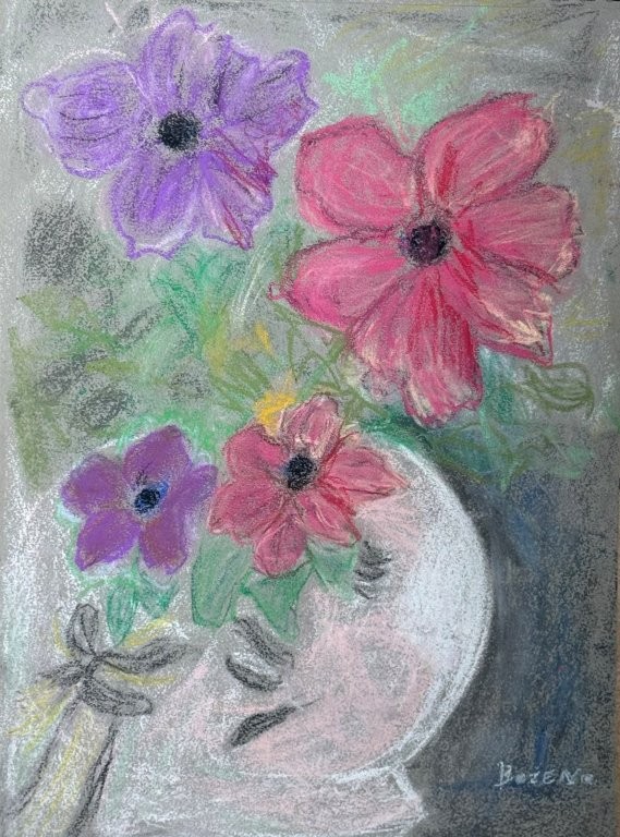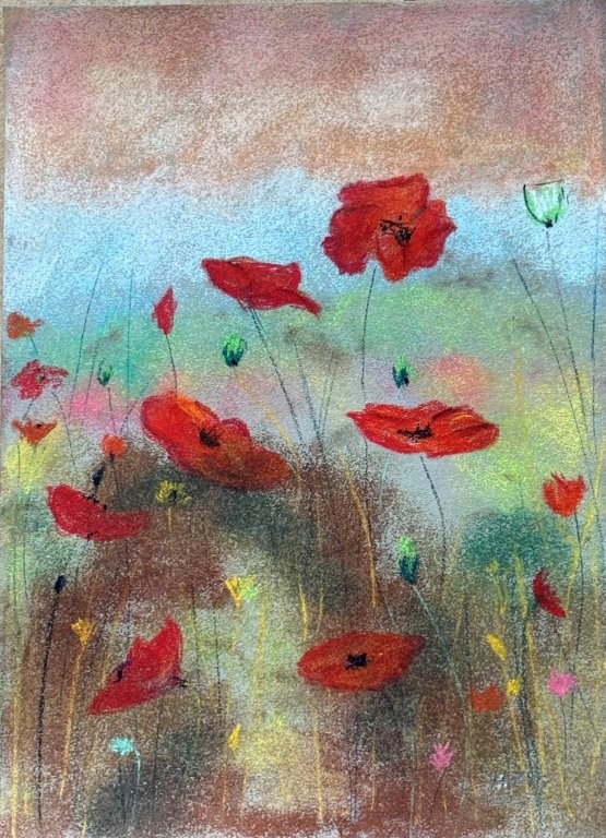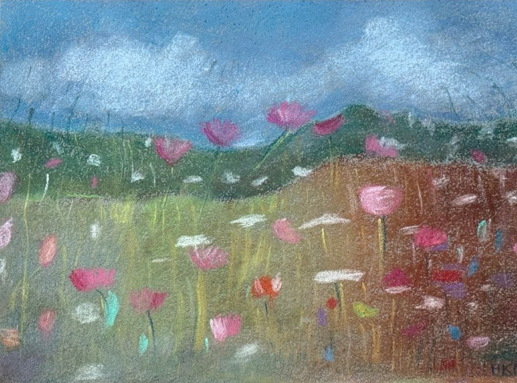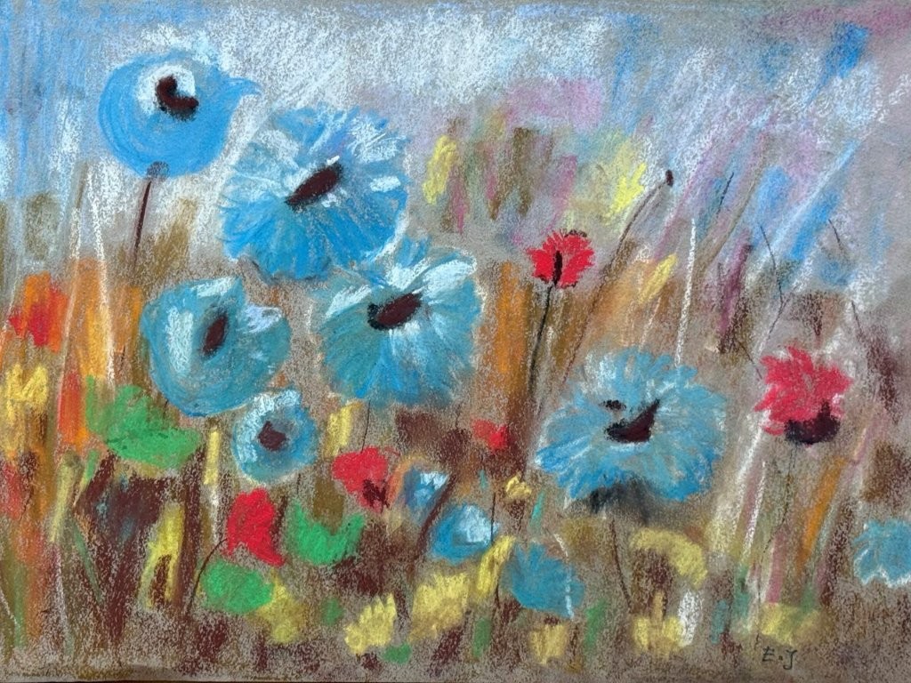 Wystawa obejmuje prace w kolejnej technice, z jaką zapoznali się seniorzy podczas pleneru malarskiego w Kołobrzegu. Obok linorytu i akwareli, wykonywano również prace w formacie A3 w technice pastelu suchego, którego tematyką były kwiaty i chmury. Podobnie jak akwarele i linoryty, prace wykonane w technice pastelu suchego wymagają oprawy pod szkłem lub pleksi.