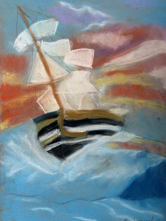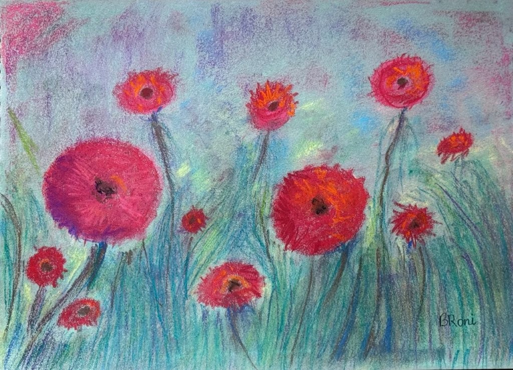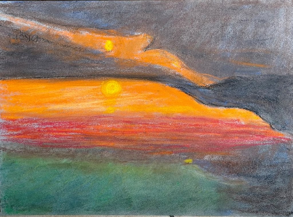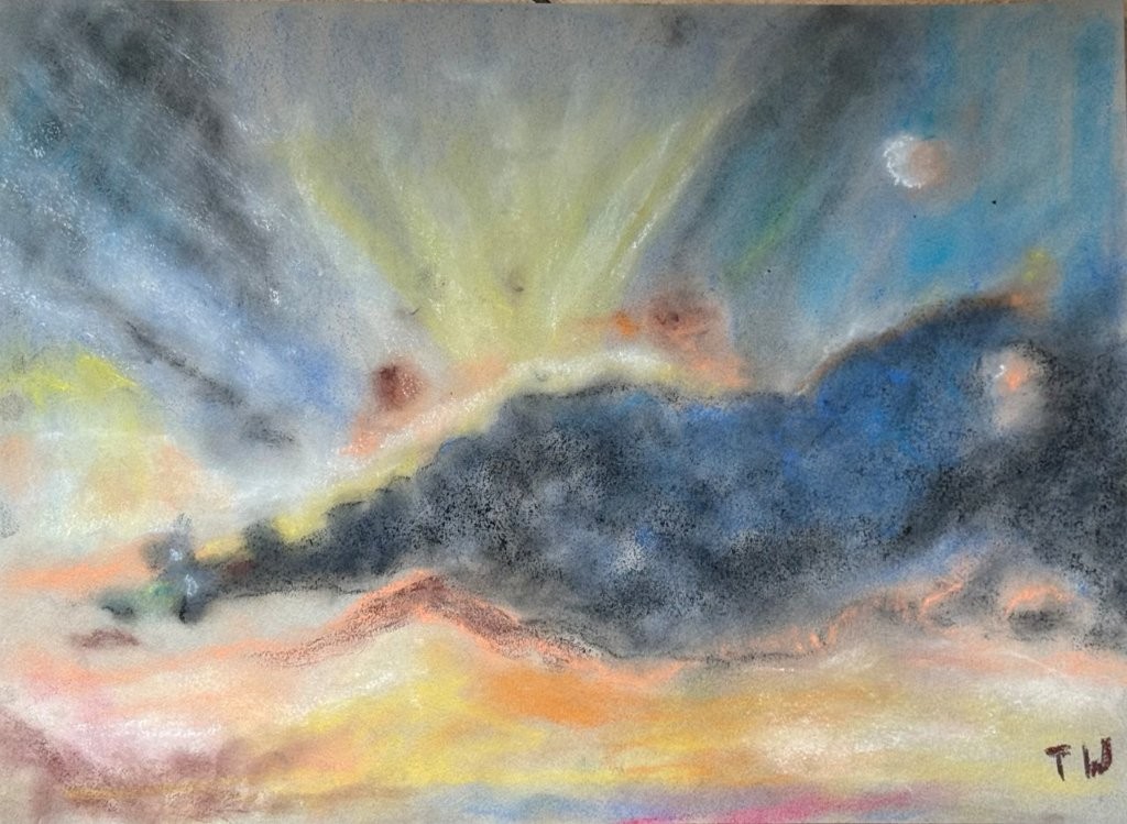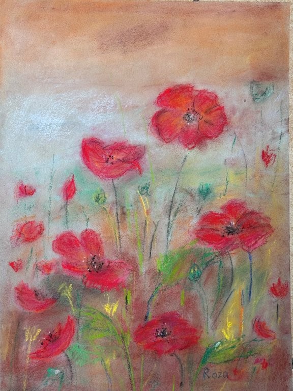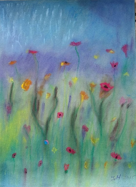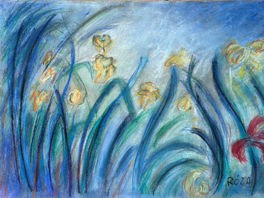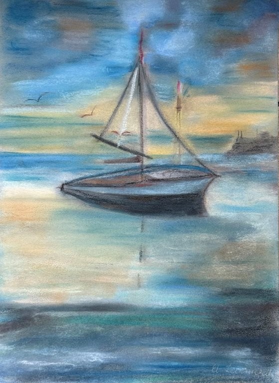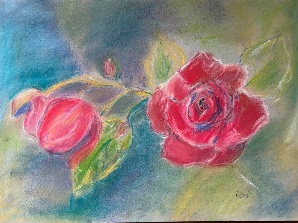 Wystawa obejmuje prace w kolejnej technice, z jaką zapoznali się seniorzy podczas pleneru malarskiego w Kołobrzegu. Obok linorytu i akwareli, wykonywano również prace w formacie A3 w technice pastelu suchego, którego tematyką były kwiaty i chmury. Podobnie jak akwarele i linoryty, prace wykonane w technice pastelu suchego wymagają oprawy pod szkłem lub pleksi.