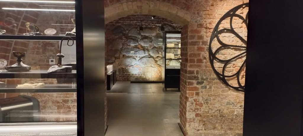 Muzeum Ratusz udostępnia obecnie tylko część pomieszczeń z powodu zmian organizacyjno-remontowych. Ku naszemu rozczarowaniu zwiedzać mogliśmy tylko parter i renesansowe piwnice, czyli część w okresie przed Quadro ( włoski architekt, który nadał Ratuszowi renesansowy charakter – 1550 rok) .
